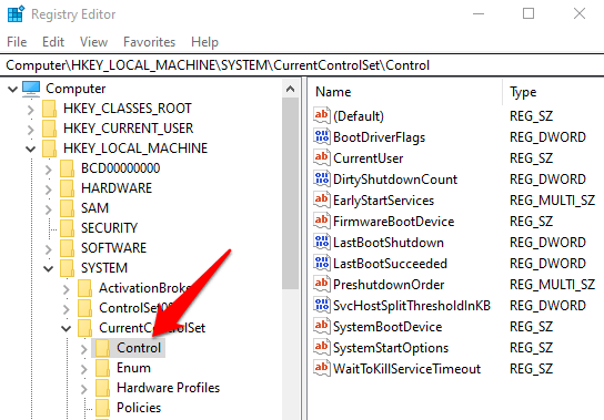 - Next, select **HKEY_LOCAL_MACHINE** and then select **System\CurrentControlSet\Control Folder**.
