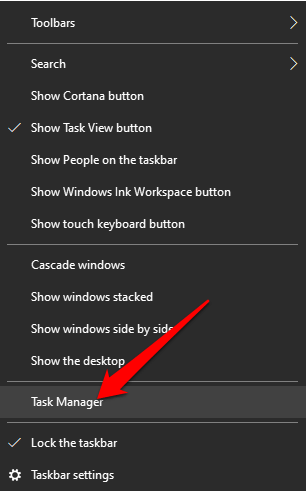 - Right-click the taskbar and select Task Manager.