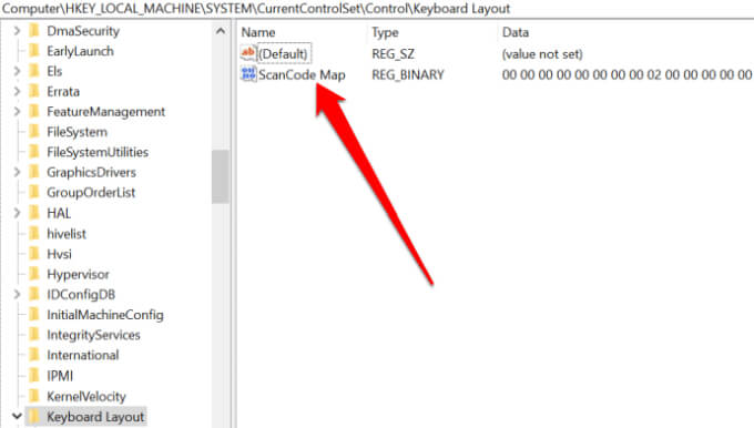 - Right-click **Scancode Map**, select **Delete** and then select **Yes** to confirm the action.