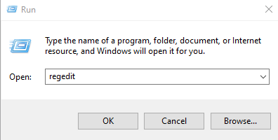 - Right-click Start > Run, type regedit in the Run box and press Enter.