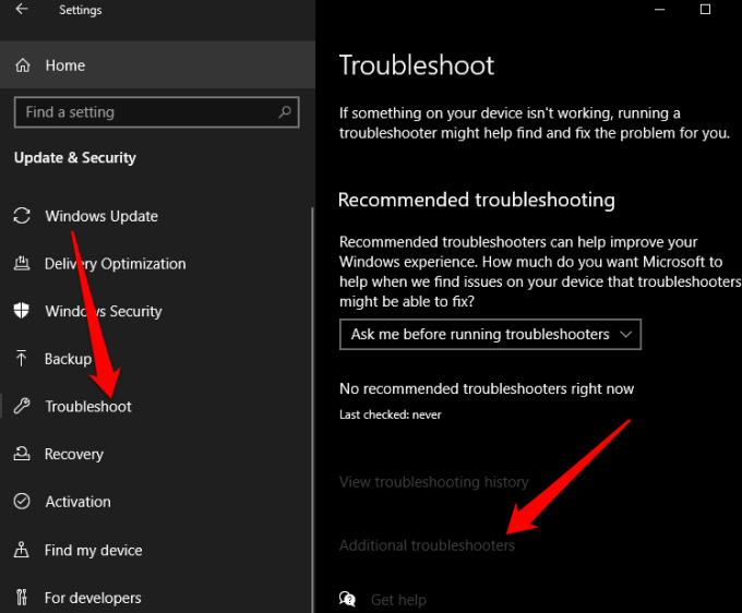 - Next, select **Troubleshoot** > **Additional troubleshooters**.