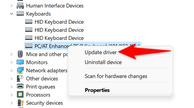 Your keyboard uses a piece of software called drivers to communicate with your PC. Sometimes, these drivers become corrupted, causing various issues with your devices. Outdated drivers can also cause specific keys to not work on your keyboard.