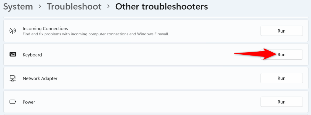 - Choose Run next to Keyboard to launch the troubleshooter.