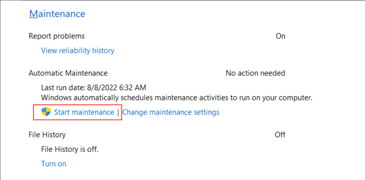 Forcing Windows to perform system maintenance via the Control Panel is another fix that can help resolve issues with a computer that keeps restarting. For that, you must: