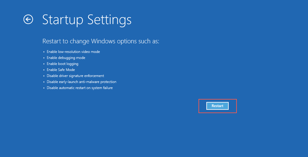 If your computer is still stuck restarting, try performing additional troubleshooting in Safe Mode. In the Windows Recovery Environment, select Startup Settings > Restart to boot Windows 10/11 in Safe Mode.