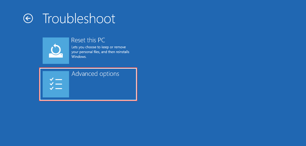 To continue troubleshooting a Windows 10 or 11 PC stuck in a reboot loop, you must enter Microsoft’s Windows Recovery Environment (WinRE). To do that, hard-reset your PC three times at the Windows logo or use a bootable USB flash drive. Then, select Troubleshoot > Advanced Options.