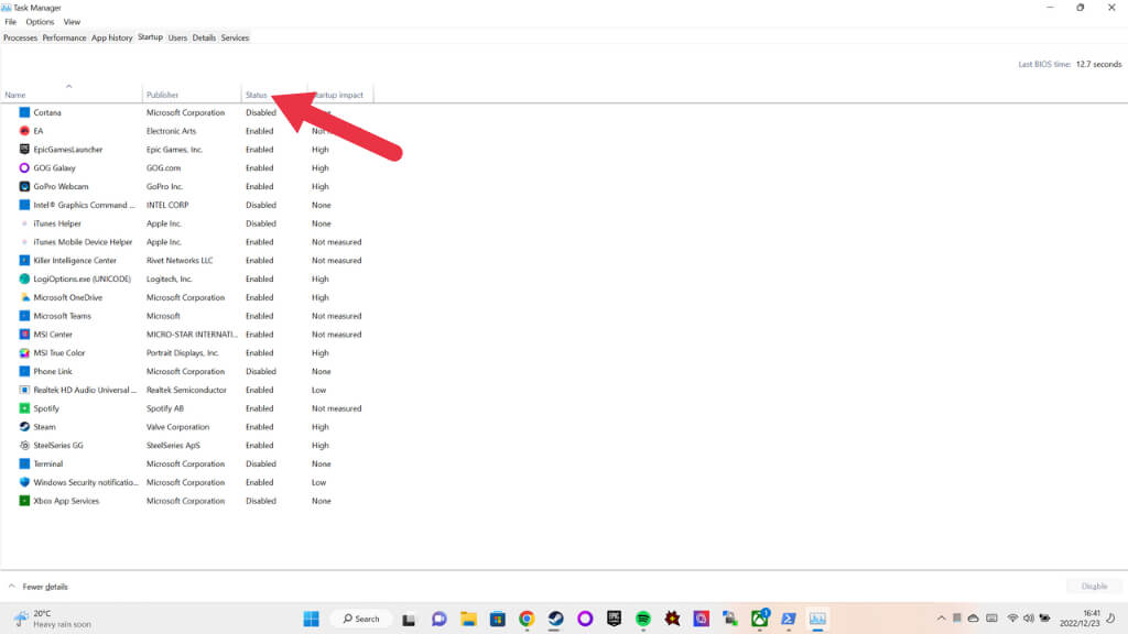 - In the Startup tab, look for an entry for “Windows PowerShell” in the list of startup items.