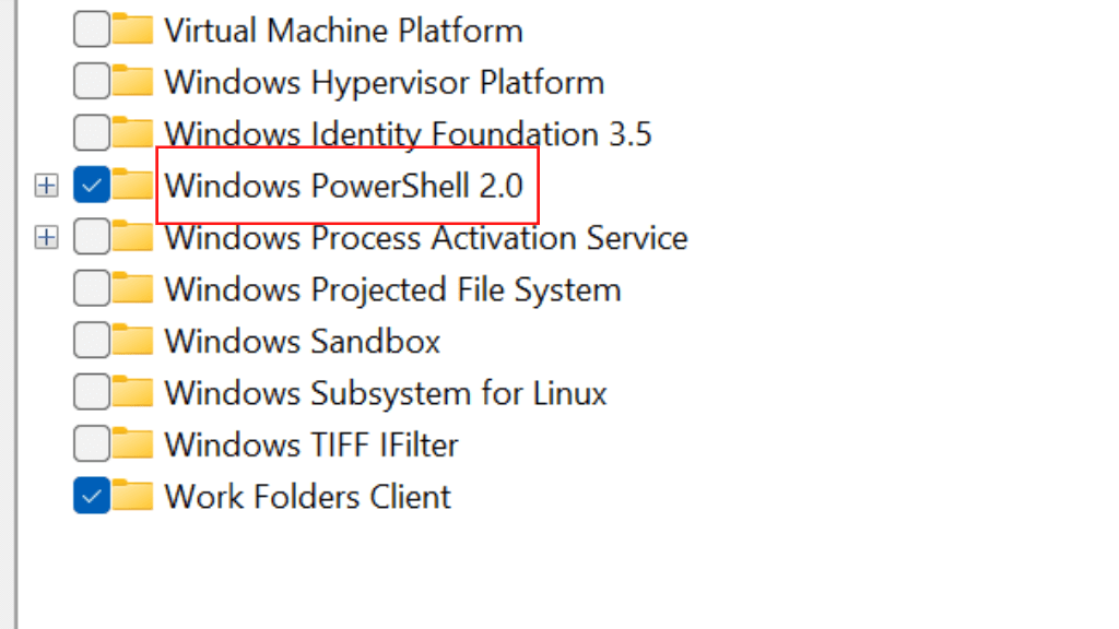 - In the Windows Features window, scroll down to the Windows PowerShell section.