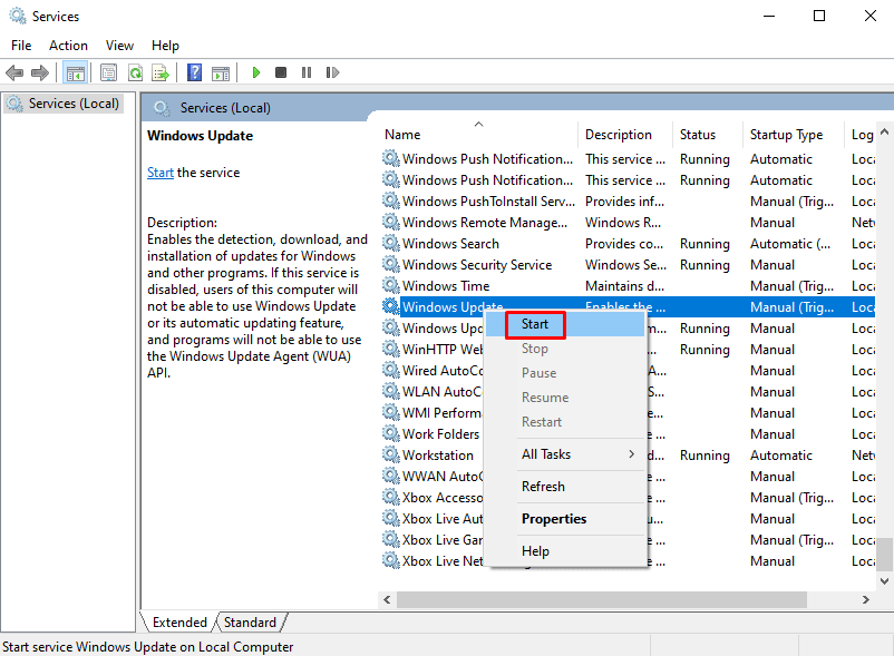 - Restart your computer and check if this fixed the Windows Update issue. * You can now go back to the Services window, find the Windows Update service, right-click it, and select Start.