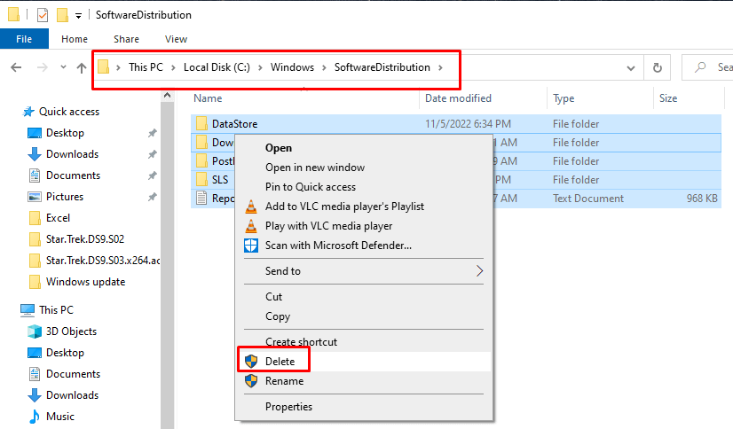 - Open the File Explorer and navigate to C:WindowsSoftwareDistribution. * This is the directory where all installation files are stored. Delete all content in this folder.