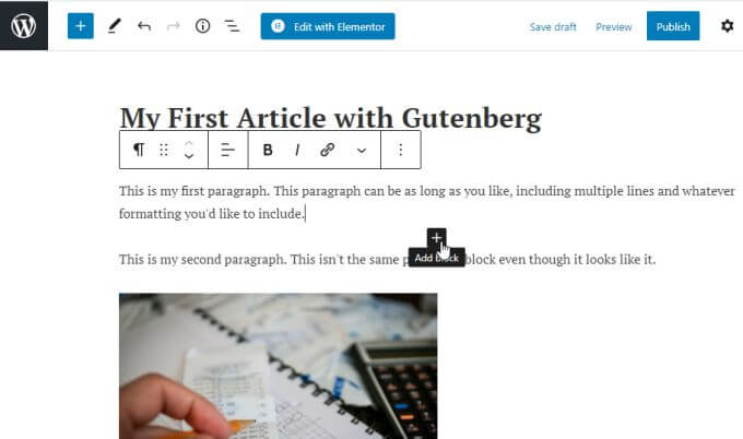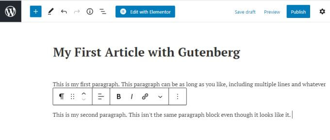 - If you press Enter, the Gutenberg editor automatically creates a new paragraph block, however it just looks like a second paragraph with a paragraph break.