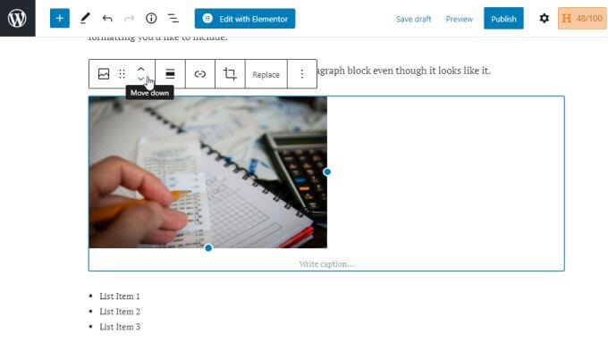 You also aren’t stuck with the placement of your blocks either. In the classic WordPress editor, it wasn’t always easy moving things like images to other sections of your post without sometimes messing up the background coding.