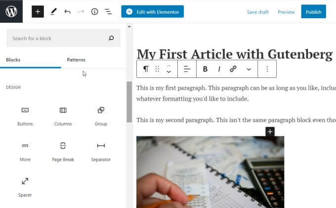 This new default editor was a major overhaul for editing both posts and pages on your site. It transformed the large text box that website owners were accustomed to into a very different block-based editing platform.
