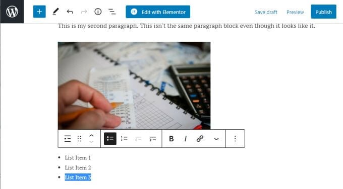 List formatting also follows the font style and size as defined by your theme, so don’t be surprised if the font in your list looks different than your paragraph blocks.