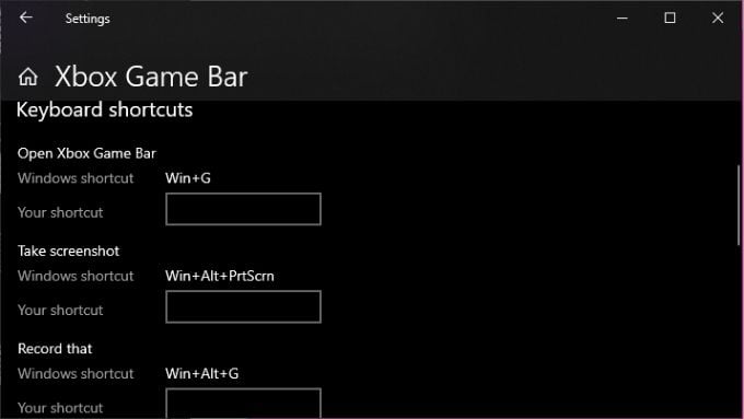 - Under Keyboard Shortcuts, make sure the Win + G combo is still valid.