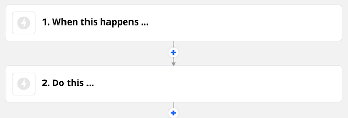 If you’re using a plan that allows you to set up multi-step Zaps, you just have to click the plus symbol underneath the second step to continue creating instructions.