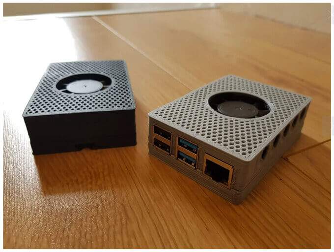 John Sinclair has designed a case for the Pi 4 that accommodates a 40mm fan. Sinclair says that the fan is designed to fit into the case’s lid without the need for glue or screws. Notably, it is printed with no top or bottom layers, which makes the infill visible and gives this case its distinctive hexagonal look.