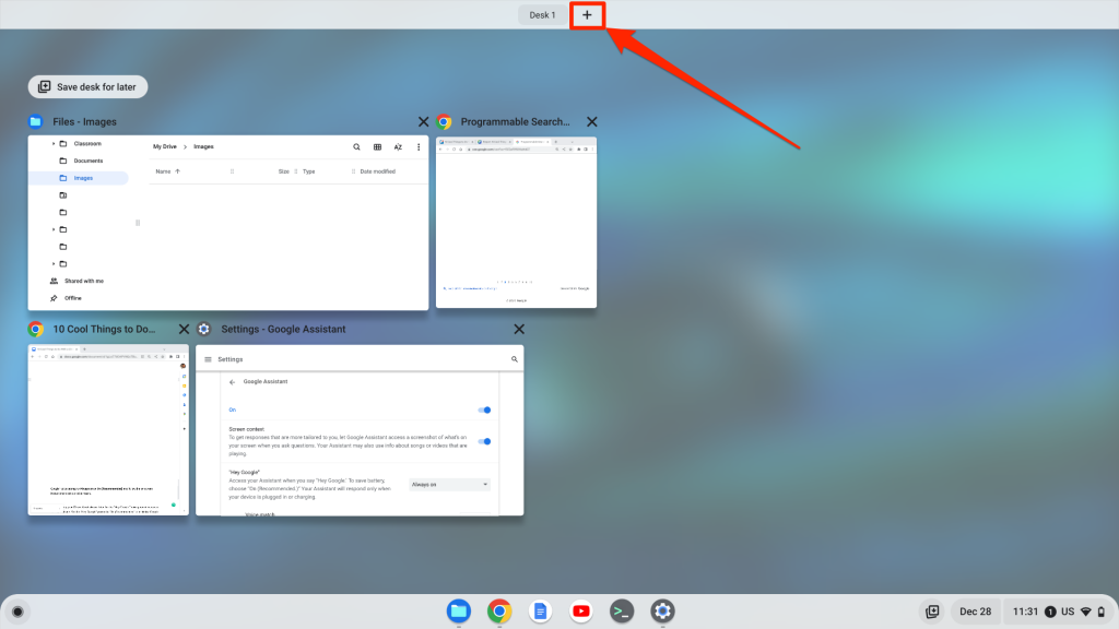Pro Tip: Use the Shift + Search + Equal sign (=) keyboard shortcut to create virtual desktops on your Chromebook.