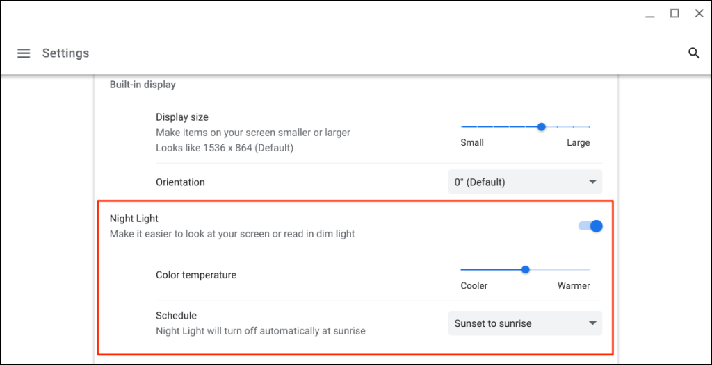 Constant exposure to blue light is bad for your eyes. It messes with your sleep pattern and causes insomnia in the long run. The ChromeOS “Night Light” feature changes your Chromebook’s screen color and helps you fall asleep faster at night.