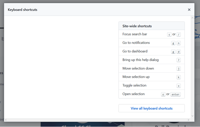 Almost every page on GitHub includes a list of shortcuts that can be used on that specific page. You can access the shortcut by typing “?” into a dialogue box.