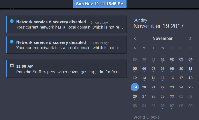 Linux distributions like GNOME have a notification tray for various activities and systems. This is also where your system calendar is located.