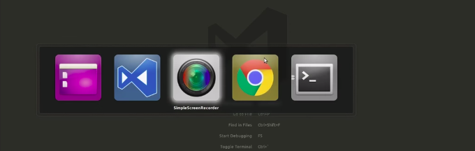 When running more than one application at a time, to switch between them use the shortcut key combination Alt+Tab or Super+Tab.