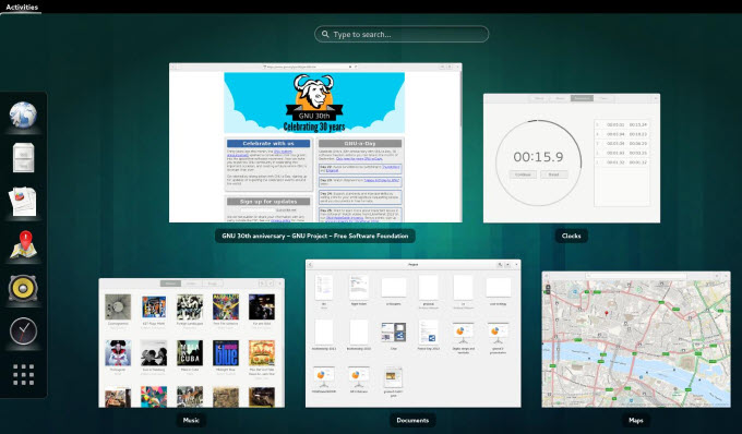 Clicking the Super key will display an overview of the Activities. This key will show you all the applications you are currently running on your computer.