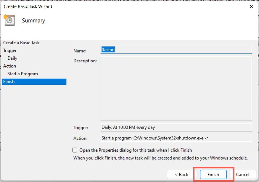 It’s possible to schedule a restart using the Task Scheduler built into Windows. You also have the option of making that a one-off or recurring task. To do that: