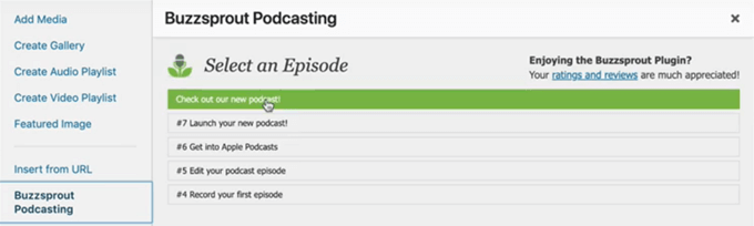 The Buzzsprout Podcast Plugin for WordPress makes it simple to share your Buzzsprout hosted podcasts within your website. It creates a new icon in your Upload/Insert toolbar for one-click access to all of its capabilities.