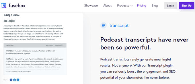 Fusebox is a toolbox full of podcasting goodies. You’ll find it has a lot of the same features as the other podcast manager plugins we’re talking about. Where it really shines as a WordPress Podcast plugin is that it provides a transcription, even in the free version.