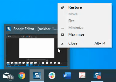 There’s just one more thing that you can squeeze out of pinned apps. Know how when you mouse over them, it shows a little preview of the app’s window? Right-click on that for a menu that allows you to restore, move, resize, minimize or maximize the window.