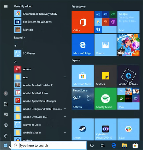 This one you already know about. It’s the Windows icon in the leftmost corner of the toolbar. Clicking on it brings up the Start menu; your gateway to all the programs and everything else in Windows.