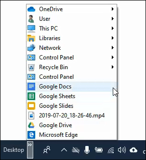 The Desktop toolbar does a similar thing. It shows you what’s on your desktop. It also gives you access to high-use locations on your computer. You can open them all from here.