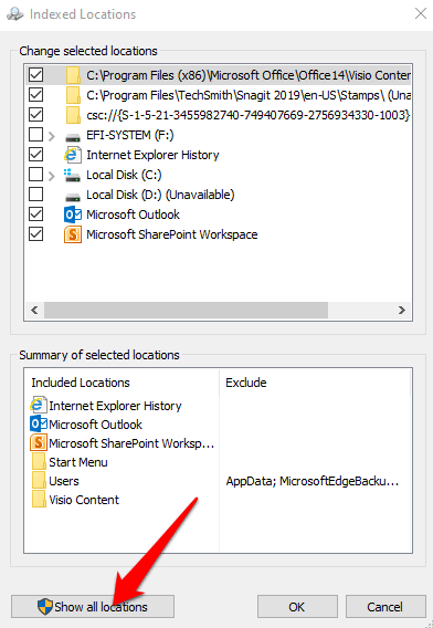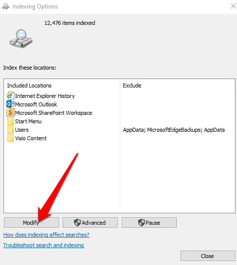 Windows will no longer index the specified locations and your computer’s performance will improve.