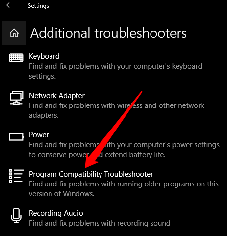 - Next, select **Program Compatibility Troubleshooter **>** Run the troubleshooter** and then select the app or program with issues. Select **Next** and continue with the troubleshooter.