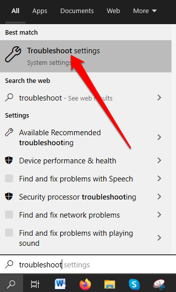 - To run the Program Compatibility Troubleshooter, type Troubleshoot in the search box and select Troubleshoot settings.