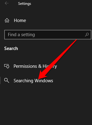 - Select Settings > Search > Searching Windows.