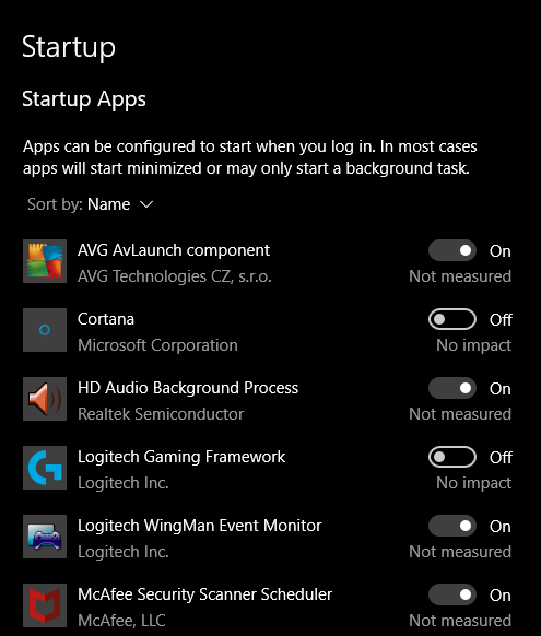 - Find the program you want to stop in the **Startup Apps** area and set it to **Off**.