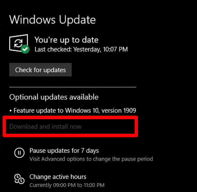 - Check if there are any updates available or pending updates, and then select **Install now** to install them.