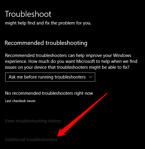 - Select **Additional Troubleshooters**.