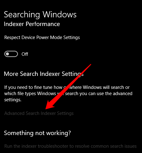 - Next, select **Advanced Search Indexer settings** under the **More search indexer settings**.