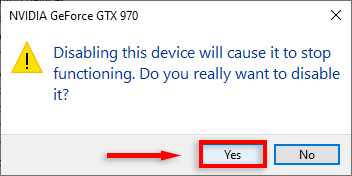 - In the pop-up window, select Yes.