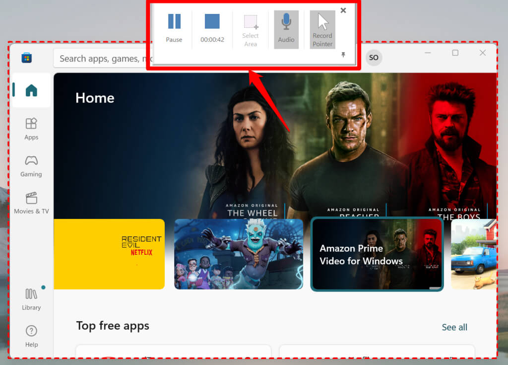 - Select Pause on the Dock or press Windows key + Shift + R to pause the recording.