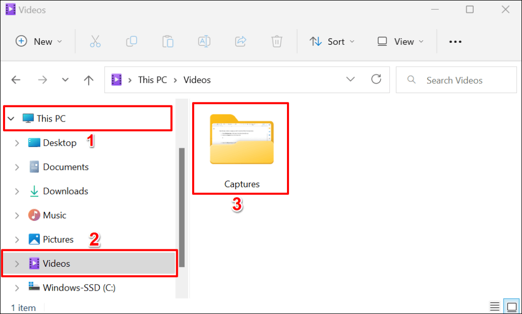 Xbox Game Bar’s screen recordings are saved in your PC’s Videos folder. Head to File Explorer > This PC > Videos and open the Captures folder.