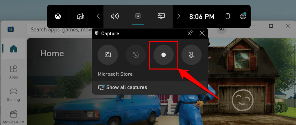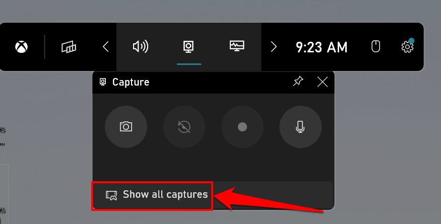 - Select the Capture icon on the Game Bar.