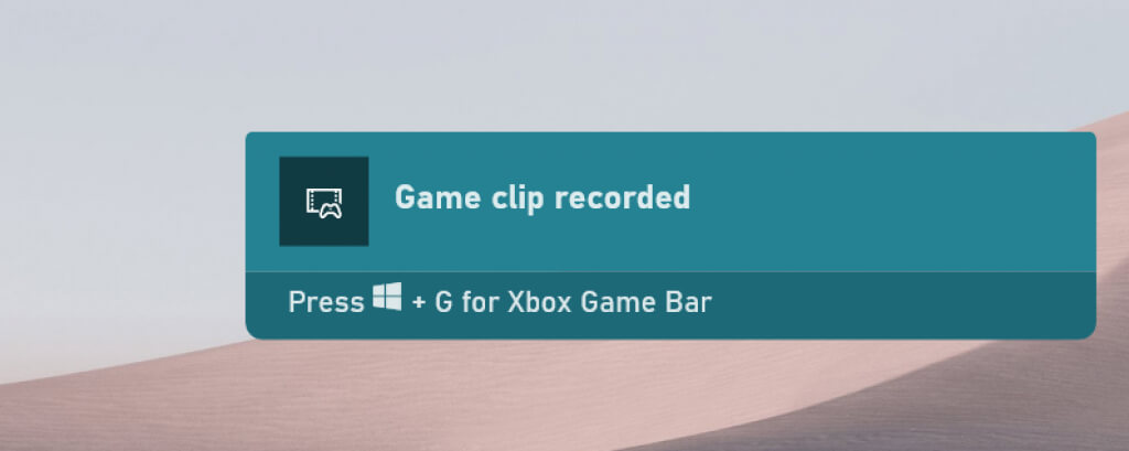 The Xbox Game Bar should display a “Game clip recorded” notification on the right edge of your screen.