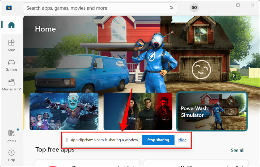 - A floating dock notifying you that “app.clipchamp.com is sharing a window” will appear on the screen. Select Stop sharing to end the screen recording session.