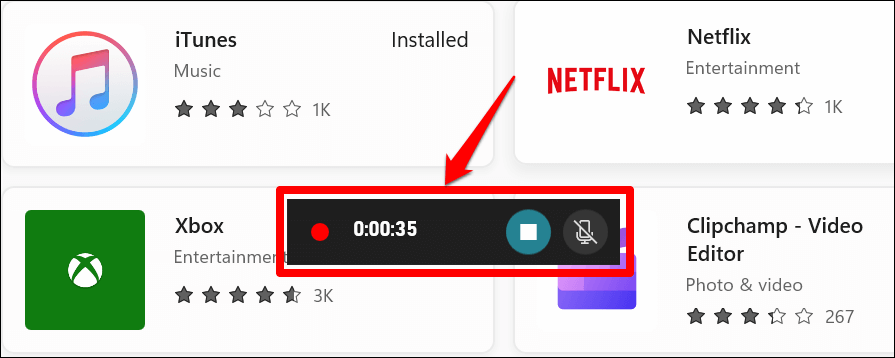 Select the Stop button above the timer or press Windows key + Shift + Q to end the screen recording session. You can stop capturing your PC’s audio or cursor during screen recording.