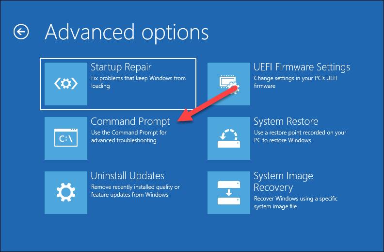 - Next, press Troubleshoot > Advanced options > Command Prompt to open a Command Prompt window.