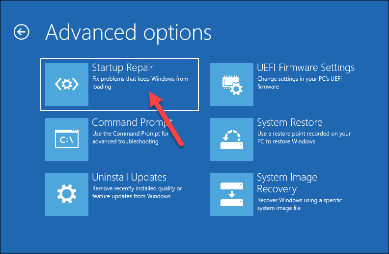 If that’s the case, you can use the built-in Startup Repair tool (also known as the Automatic Repair tool) to resolve it. This tool can fix problems that prevent Windows from loading properly.